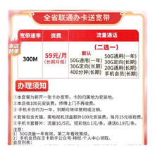 联通中国联通山东全省联通宽带免费上门报装59/月300M宽带 59/月80G流量400分钟通话300M宽带