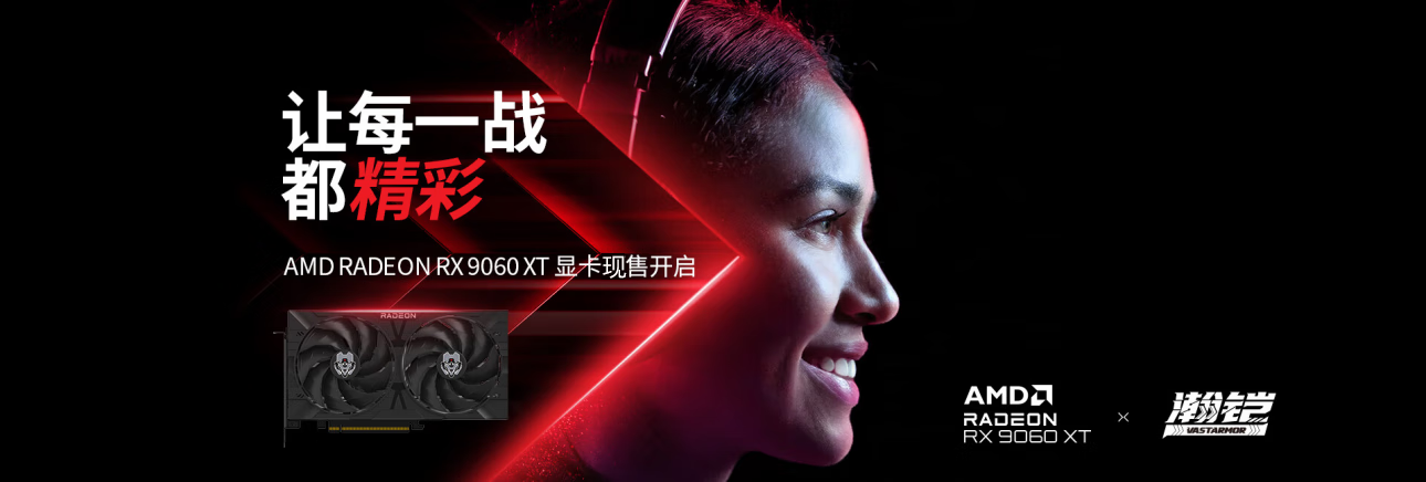 瀚铠AMD RADEON RX 9060 XT 8GB /16GB 黑色合金 电竞 无畏契约/三角洲行动/魔兽 独立显卡 RX9060 XT16GB黑色合金
