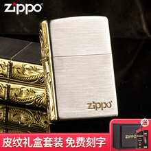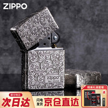 ZIPPO煤油防风打火机黄铜侧面精雕富贵唐草花送男友情人节生日礼物七夕 精美皮盒装