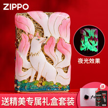 ZIPPO煤油打火机九尾狐镀金花丝珐琅夜光之宝生日礼物送男友圣诞情人节 花丝九尾狐-粉色