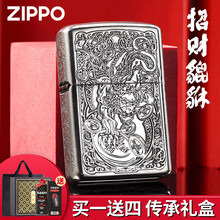 ZIPPO煤油防风打火机之宝黑曜冰招财貔貅招财进宝送男友情人节生日礼物 精美礼盒装