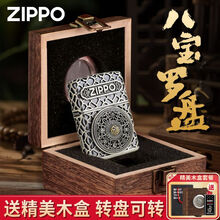 ZIPPO之宝煤油防风打火机八宝罗盘重甲套壳贴章圣诞节情人节生日礼物男 古银