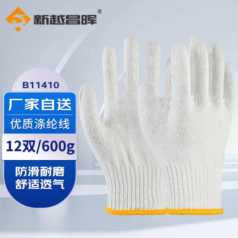新越昌晖劳保手套 防护线手套 防滑透气加厚耐磨棉纱绒手套 工作白手套 B11410 涤纶款12副/均码