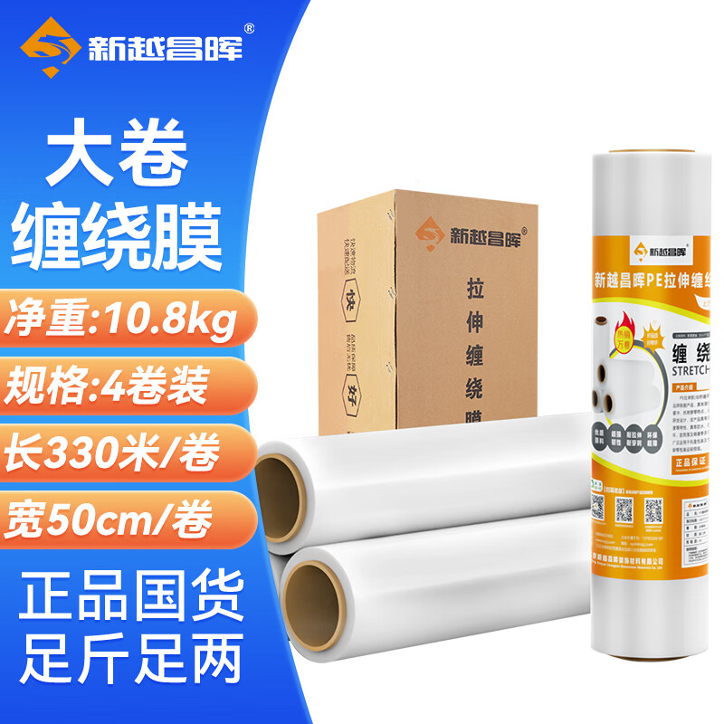 新越昌晖PE缠绕膜包装膜 拉伸膜自粘性打包膜防水膜捆包膜 宽50cm*长约330m/卷(4卷装白)