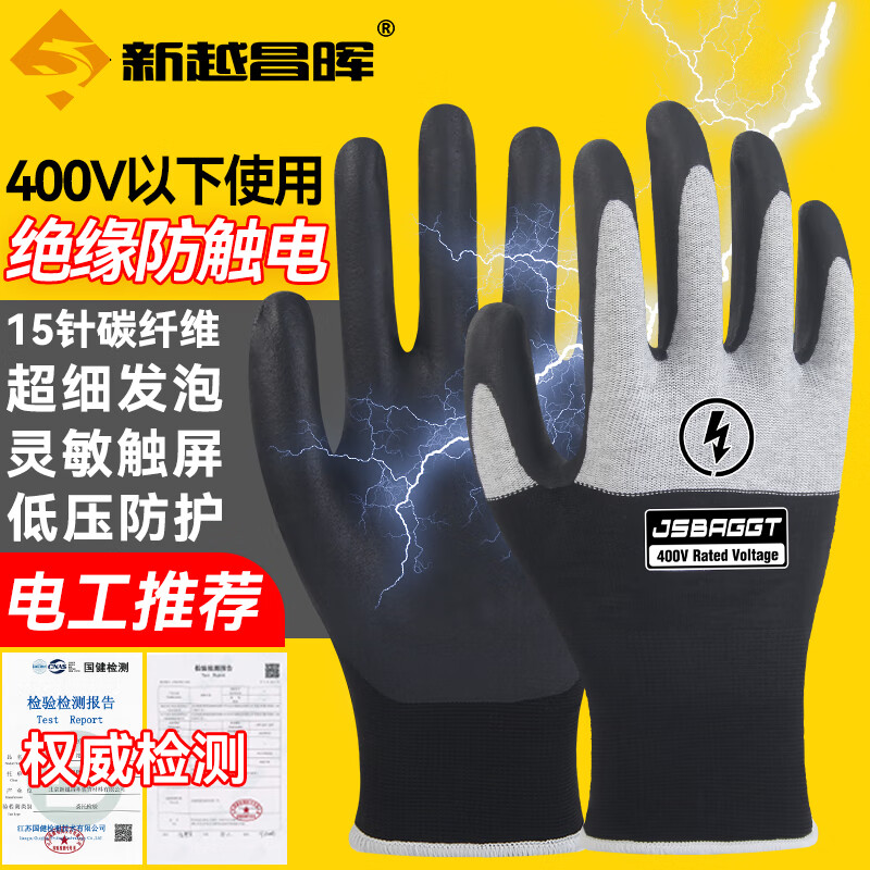 新越昌晖绝缘手套 400V电工手套 低压防电手套劳防工作防滑耐磨 400V绝缘触屏JY-BG【单副装】