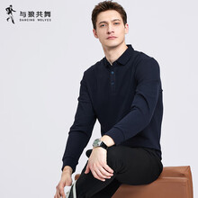 与狼共舞【高级感】长袖T恤男士2025秋季新款纯棉刺绣中青年POLO衫男6541 藏青色101 L /175