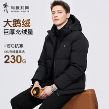 与狼共舞【鹅绒】高充绒可拆连帽羽绒服男2025冬季新款保暖厚男士外套7065 黑色001 L (175) 鹅绒量:190G