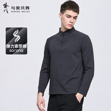 与狼共舞【轻运动】立领半拉链长袖T恤男2025秋季索罗娜弹力休闲上衣6004 黑灰002 2XL (180)
