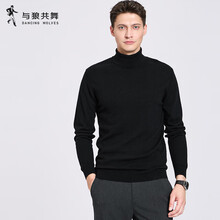 与狼共舞【100%纯羊毛】高领毛衣男2025秋冬新款纯色针织衫男装毛衫2365 黑色001 L (175)