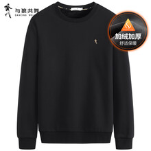 与狼共舞【通勤】刺绣圆领加绒卫衣2025秋冬新款宽松套头男装休闲上衣3037 黑色001 -加绒款 L (175)