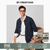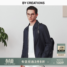 By Creations【双开拉链】柏品亚麻翻领行政夹克外套男士轻商务休闲防风夹克衫 藏青色 XL