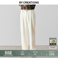 By Creations柏品纯亚麻好莱坞裤男士商务职业通勤便裤双褶高腰阔腿休闲长裤子 米色 44