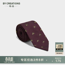 By Creations柏品羊毛真丝动物刺绣商务西装职业正装新郎结婚领带男送礼 暗红色