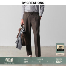 By Creations【可机洗】柏品强捻纯羊毛高腰西裤男士商务通勤长裤休闲西便裤子 咖色 44
