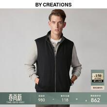 By Creations柏品双面穿羊毛立领白鹅绒羽绒马甲男士秋冬保暖背心通勤羽绒外套 黑色 XL