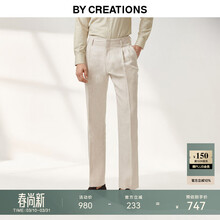 By Creations柏品纯亚麻好莱坞裤男士商务职业通勤便裤双褶高腰阔腿休闲长裤子 米色 48