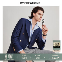 By Creations【高克重】布雷泽休闲西装外套男商务职业正装双排扣纯羊毛单西服 藏青色(双排扣) 54 (185/104A)