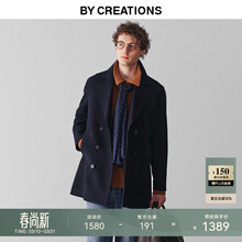 By Creations柏品高克重纯羊毛海军大衣男士重磅保暖商务双排扣毛呢子休闲外套 藏青色 S