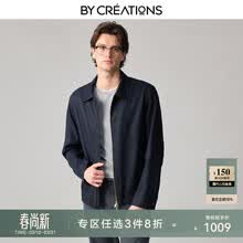 By Creations【双开拉链】柏品亚麻翻领行政夹克外套男士轻商务休闲防风夹克衫 藏青色 L