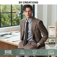By Creations柏品纯羊毛西服套装男士高档轻商务职业正装伴郎礼服新郎结婚西装 卡其色 52 码【西裤尺码可联系客服备注】