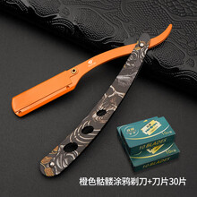 谷崎手动剃须刀老式刮胡刀修眉修鬓角刮胡刀男士专业剃须刀 橙色刀架+30刀片(图案随机)
