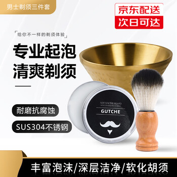 谷崎剃须泡沫 手动剃须刀泡沫皂剃须膏胡须刷不锈钢打泡碗男士老式剃须皂 #皂+胡须刷+黑色起泡碗