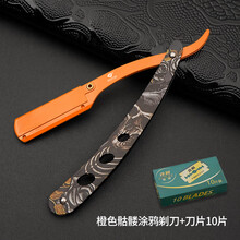 谷崎手动剃须刀老式刮胡刀修眉修鬓角刮胡刀男士专业剃须刀 橙色刀架+10刀片(图案随机)