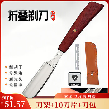 谷崎老式刮胡刀 老式剃须刀木柄折叠剃刀手动剃须刀男士剃须专用剃刀 木柄折叠剃刀+10刀片