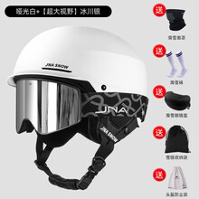 蕉牛滑雪头盔雪镜一体式男女单双板大视野防雾高清护目镜安全帽套装备 【超大视野】冰川银+哑光白头盔 L码-推荐女生(头围53-58cm)
