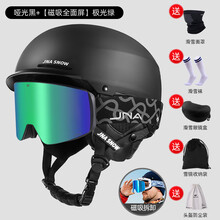 蕉牛头盔雪镜一体磁吸护目镜男女雪盔单双板滑雪保暖防撞可调节安全帽 【磁吸可拆镜片】极光绿+哑光黑头盔 XL-建议男生(头围58-62cm)