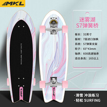 迈卡龙陆地冲浪板滑板S7弹簧免蹬陆冲板初学者成人男女儿童专业扭扭滑板 32寸迷雾湖【初学S7】