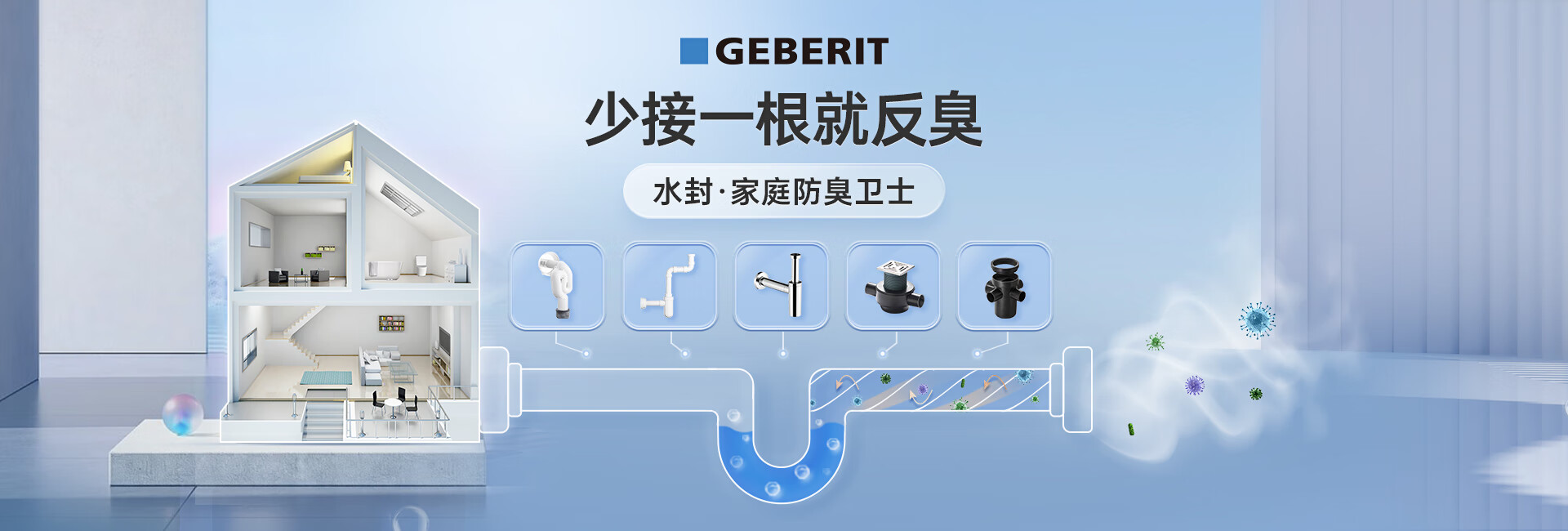 吉博力 GEBERIT家用HDPE排水系统防虫防臭下水存水弯 4个用水点/卫生间