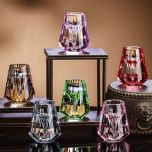 VINOS江户切子水晶杯威士忌洋酒杯星芒杯高档手工啤酒烈酒杯送礼物酒具 透明钻面洋酒杯【礼盒】 200ml 2个