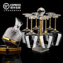 VINOS欧式奢华金箔水晶红酒杯套装醒酒器家用高档葡萄酒高脚杯子酒具 勃艮第*6+镀金醒酒器+杯架 600ml