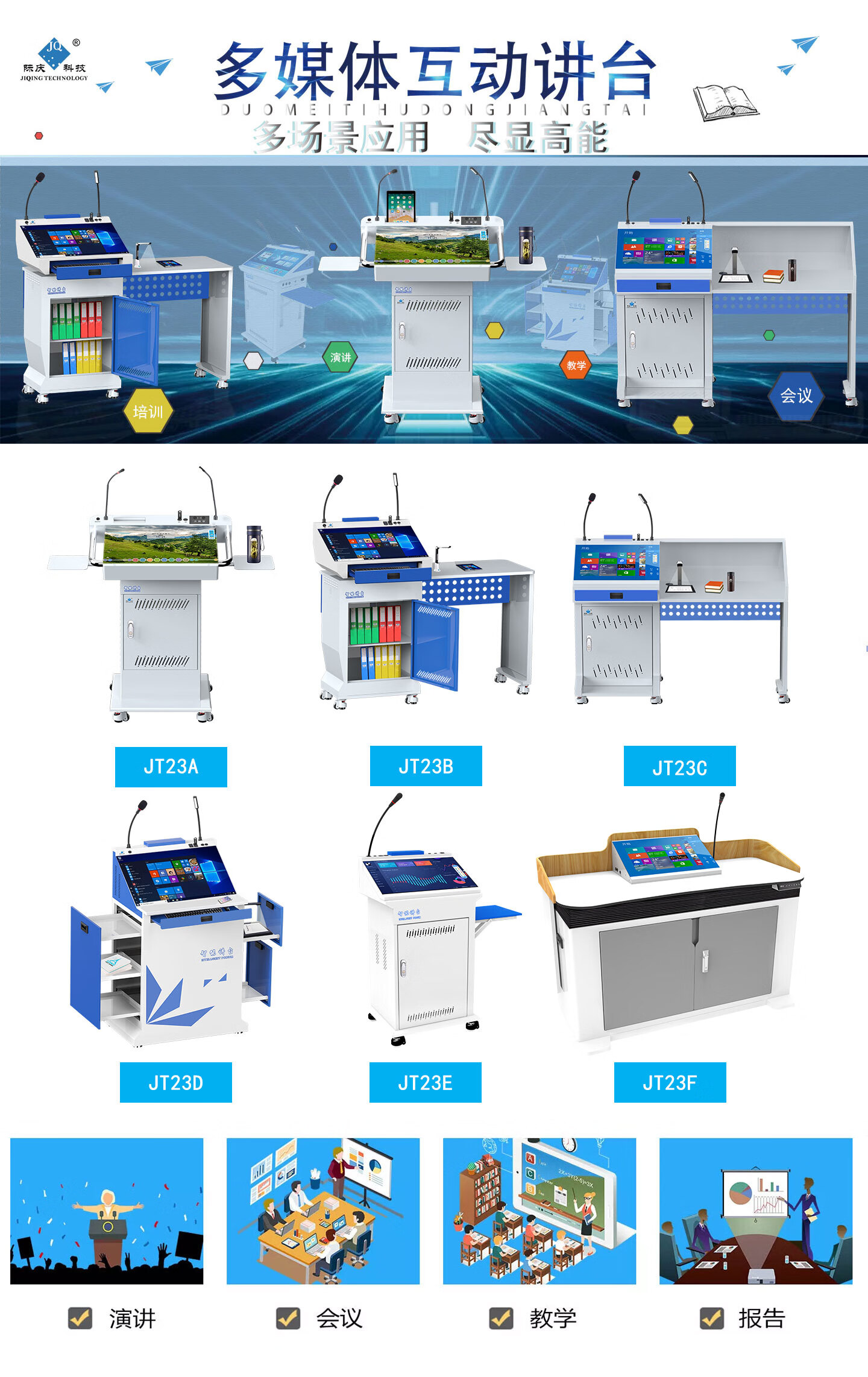 际庆科技(JIQING TECHNOLOGY JQ)多媒体移动讲台 智能会议演讲台JT23B