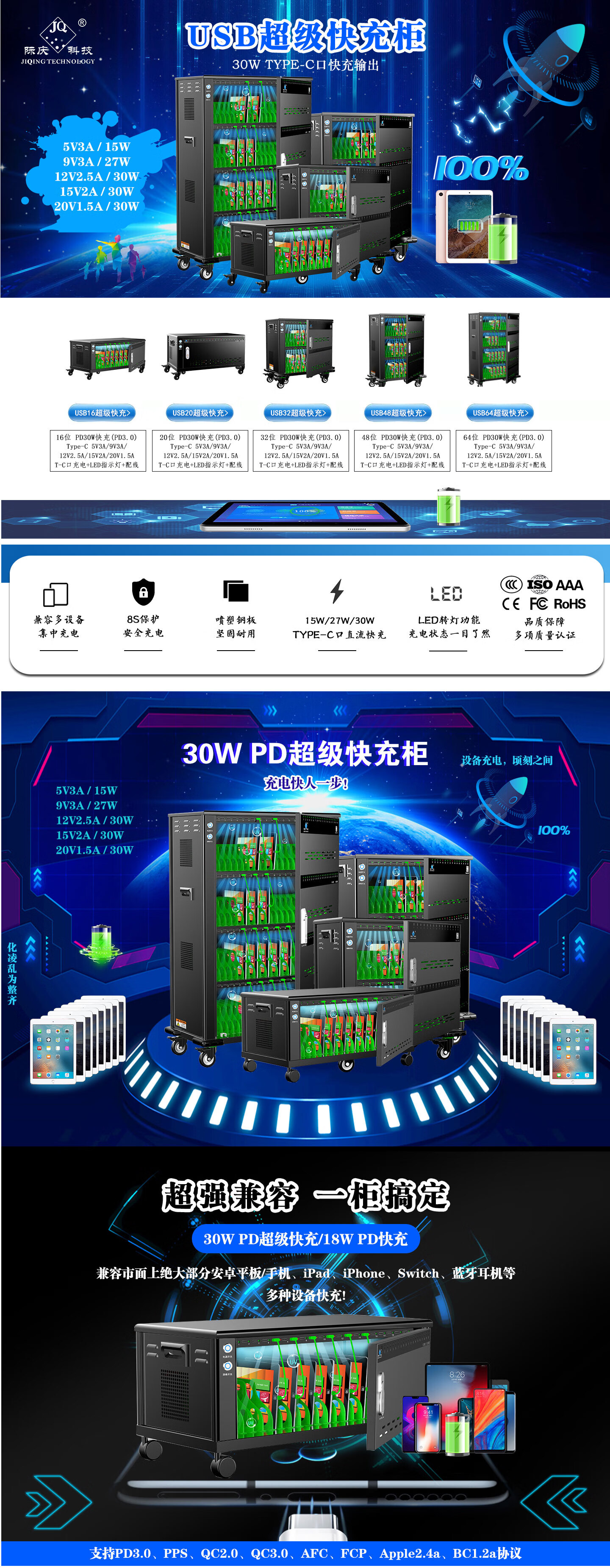 际庆科技(JIQING TECHNOLOGY JQ)平板电脑充电柜USB超级快充柜PD30W充电柜USB16/32/48/60/64快充 USB16超级快充(Type-C口充电)