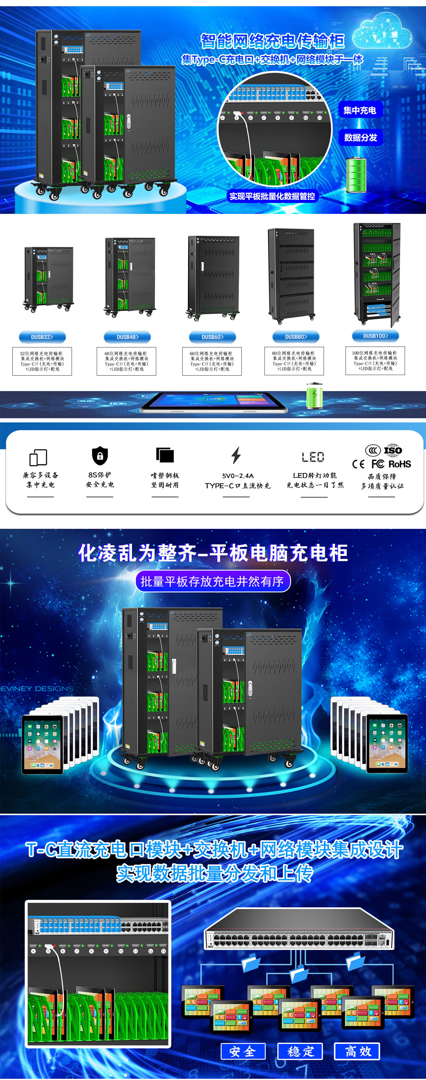 际庆科技(JIQING TECHNOLOGY JQ)际庆平板充电柜集成交换机智能网络充电传输柜DUSB系列 DUSB32