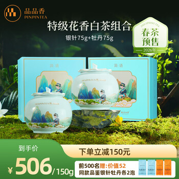 品品香【春茶预售】福鼎白茶 开春头采特级花香白茶白毫银针白牡丹 尝鲜 【预售】2026银针1盒+牡丹1盒 共 75g*2盒 赠品鉴各2泡