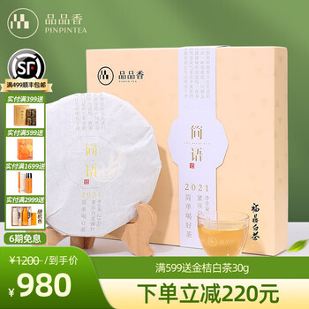 品品香 茶叶福鼎白茶简语四年陈老白茶2021年明前茶白毫银针饼250克礼盒 250g*1饼