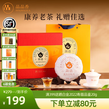 品品香白茶 福鼎白茶 2021年原料老白茶白牡丹茶饼250g礼盒装 四年陈 250g*1饼