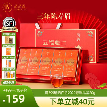品品香福鼎白茶 五福临门白牡丹寿眉组合礼盒装茶叶自饮送人节日伴手礼 三年陈寿眉 60g*5盒