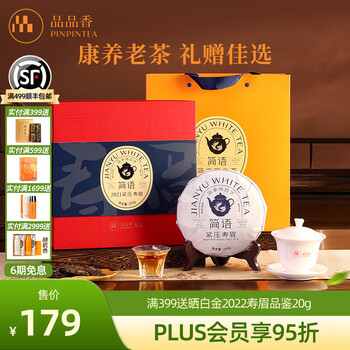 品品香白茶简语陈皮白茶福鼎白茶五年陈寿眉紧压茶礼盒送礼自饮口粮茶叶 原味方片白茶 90g*2盒 赠精美礼袋