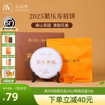 品品香白茶 福鼎白茶 简语2025新茶寿眉礼盒装自饮茶叶送礼送长辈 2025紧压寿眉饼 250g*5饼 整提囤茶装【最多人选】