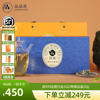 品品香福鼎白茶 三年陈特级白毫银针精品版80g礼盒装茶叶自饮送礼