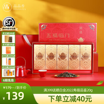 品品香福鼎白茶 五福临门白牡丹寿眉组合礼盒装茶叶自饮送人节日伴手礼 2024年寿眉 60g*5盒