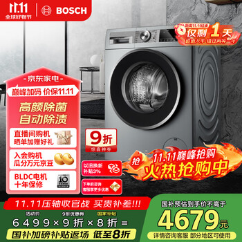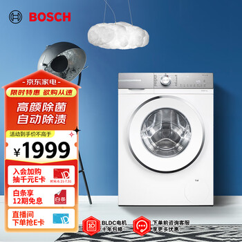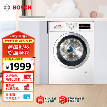 博世(BOSCH)【云朵白】家用滚筒洗衣机全自动10公斤大容量变频 除菌除螨 国家补贴20%洗衣机 WGA152000W