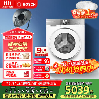 博世(BOSCH)6系活氧 智能投放 99.99%除菌除病毒 云朵白衣物护理中心 变频洗衣机 XQG100-WGA254D80W