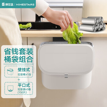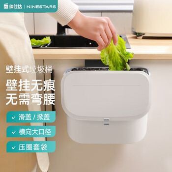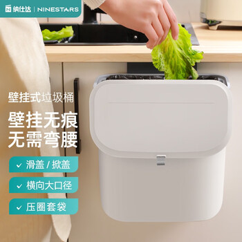 纳仕达厨房滑盖垃圾桶带盖橱柜门家用壁挂式厕所卫生间客厅悬挂收纳纸篓 白色BGT-7-2【小号】+黑色垃圾袋/150只