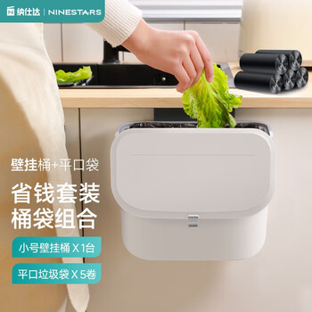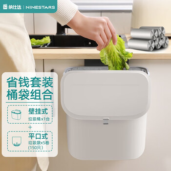 纳仕达厨房滑盖垃圾桶带盖橱柜门家用壁挂式厕所卫生间客厅悬挂收纳纸篓 白色BGT-7-2【小号】+银灰垃圾袋/150只