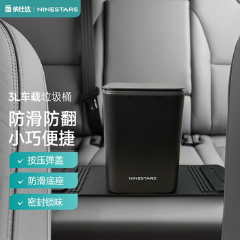 纳仕达汽车专用车载垃圾桶小号迷你桌面收纳桶高档配置时尚垃圾桶 矅岩黑-3L-按压